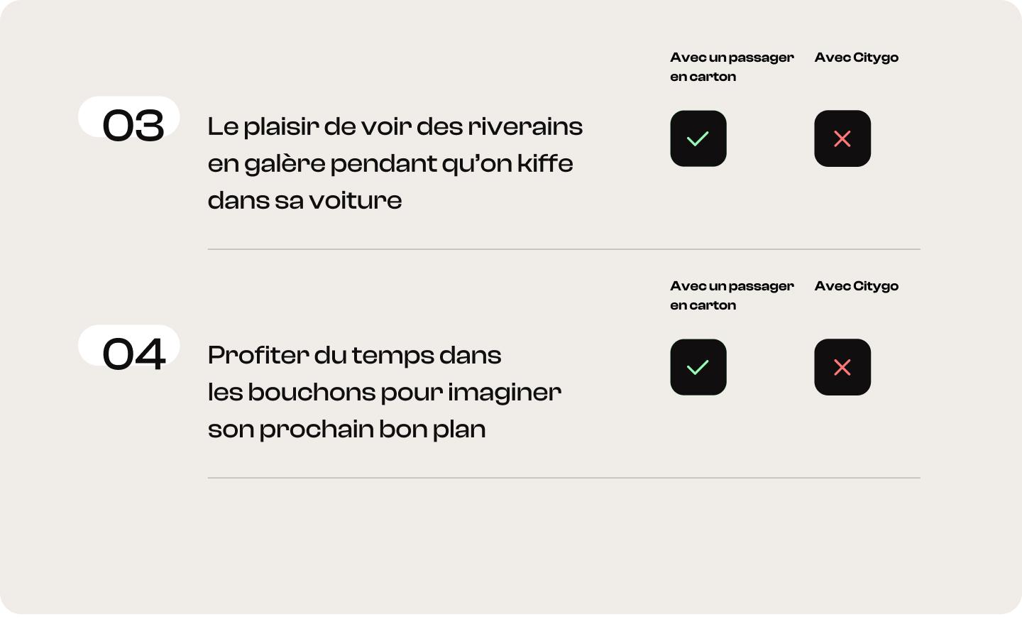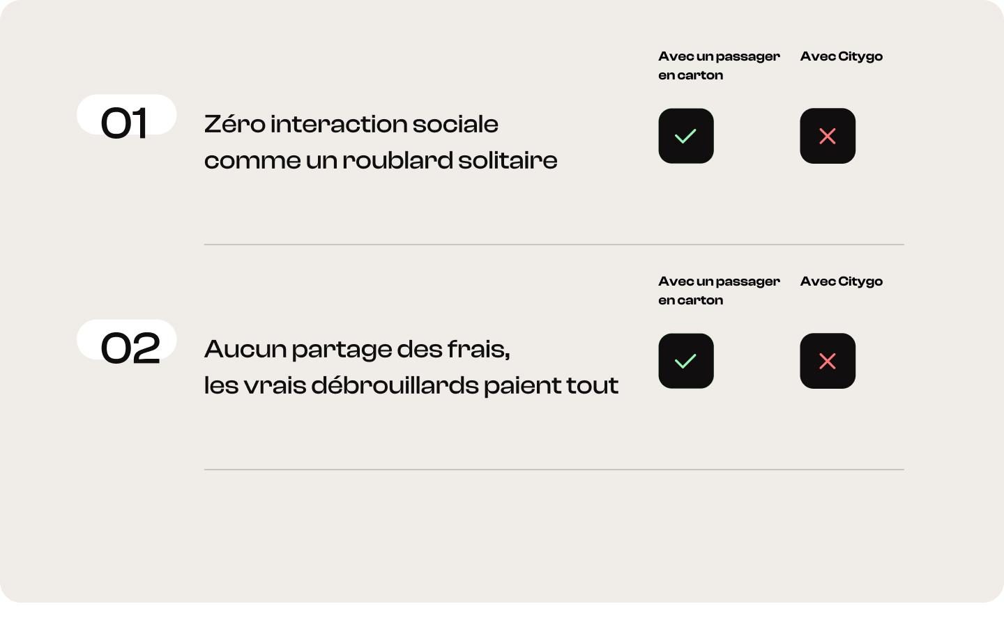 de fabriquer son passager en carton au lieu d’opter pour un service de covoiturage urbain comme Citygo :